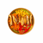 Mix Salat, Kirschtomaten, Gurken, Möhren, frische Paprika, Mais & Crispy Chicken Finger