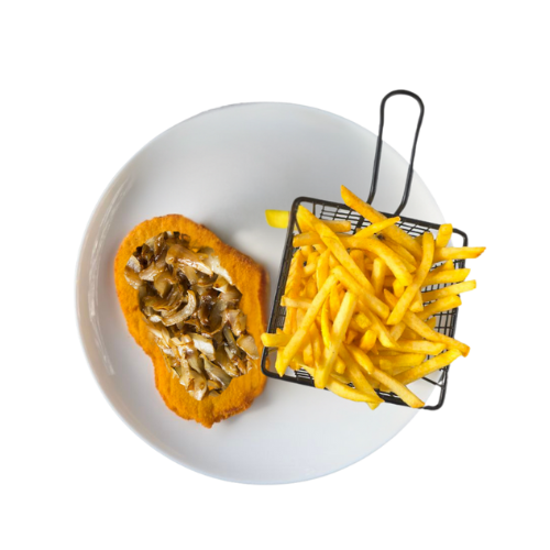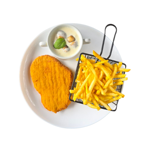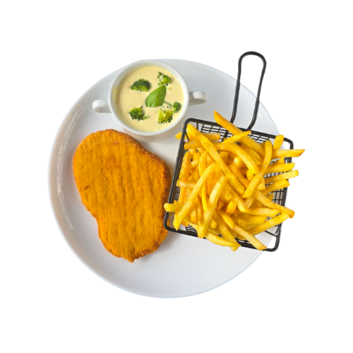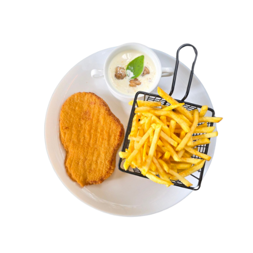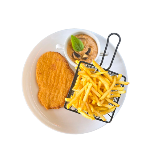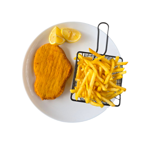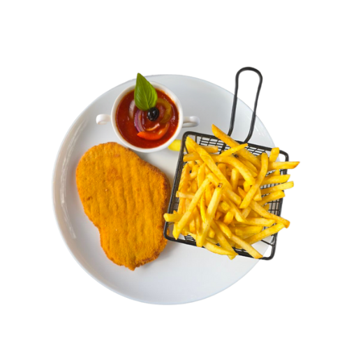 Alle Schnitzel werden mit Pommes serviert