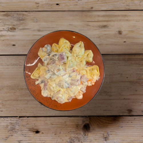 mit Schinken, Champignons, Scampis in Sahnesauce