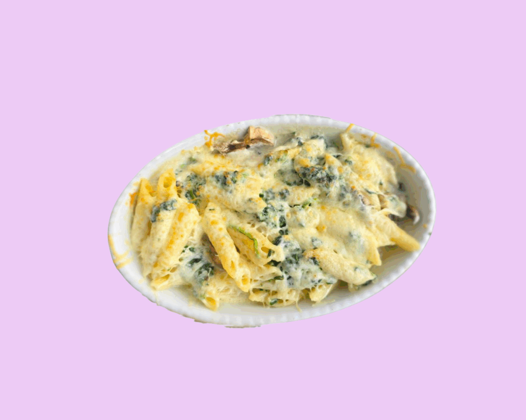 mit Champignons, Spinat, Penne & Gorgonzola in Sahnesauce